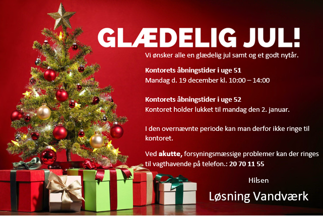 Kontoret holder lukket fra tirsdag den 20. december til og mandag den 2. januar.